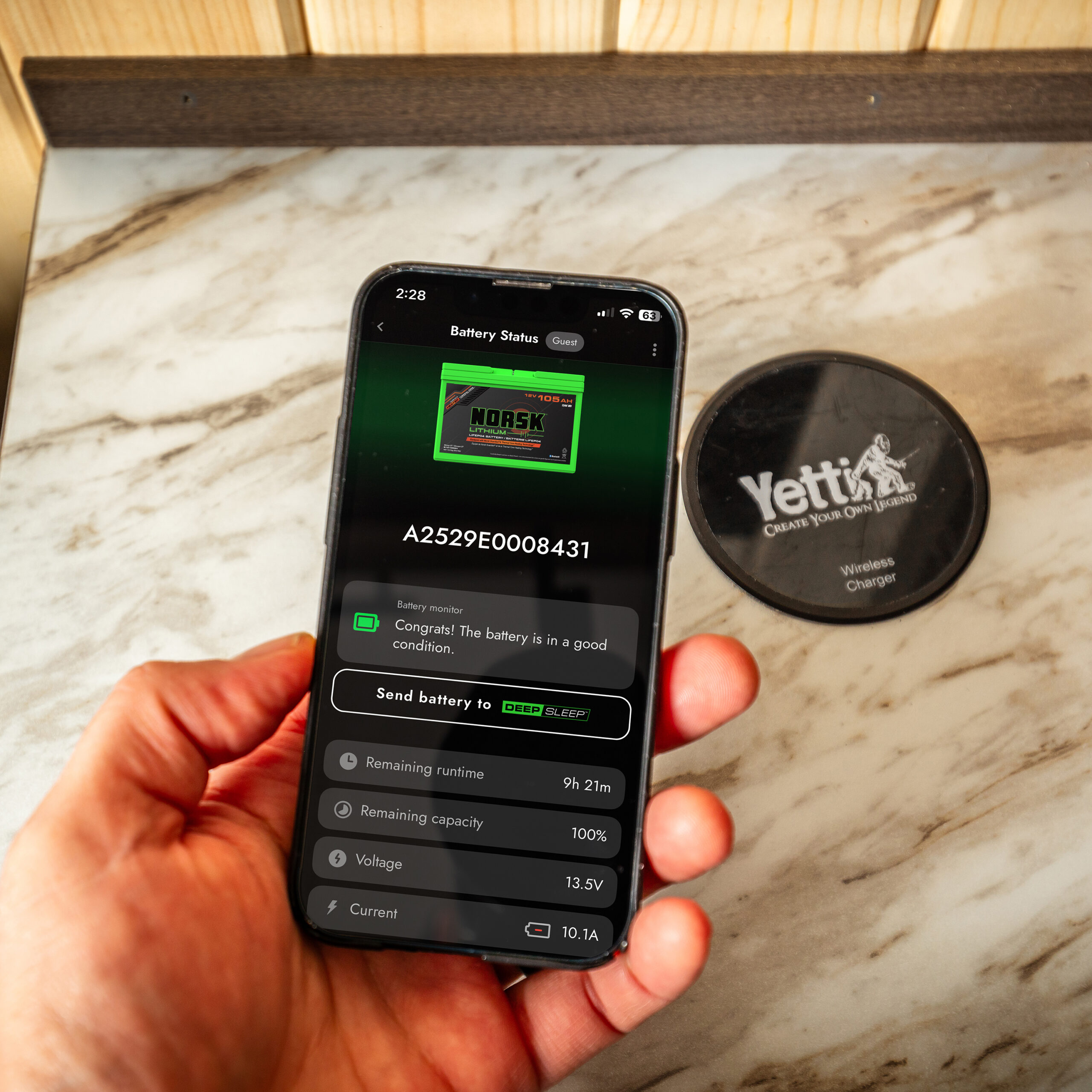 The system includes complete battery monitoring through the free Norsk Guardian® App, offering real-time visibility into voltage, state of charge, temperature, and overall system health. App-based monitoring allows users to easily track power usage and charging activity throughout the season.