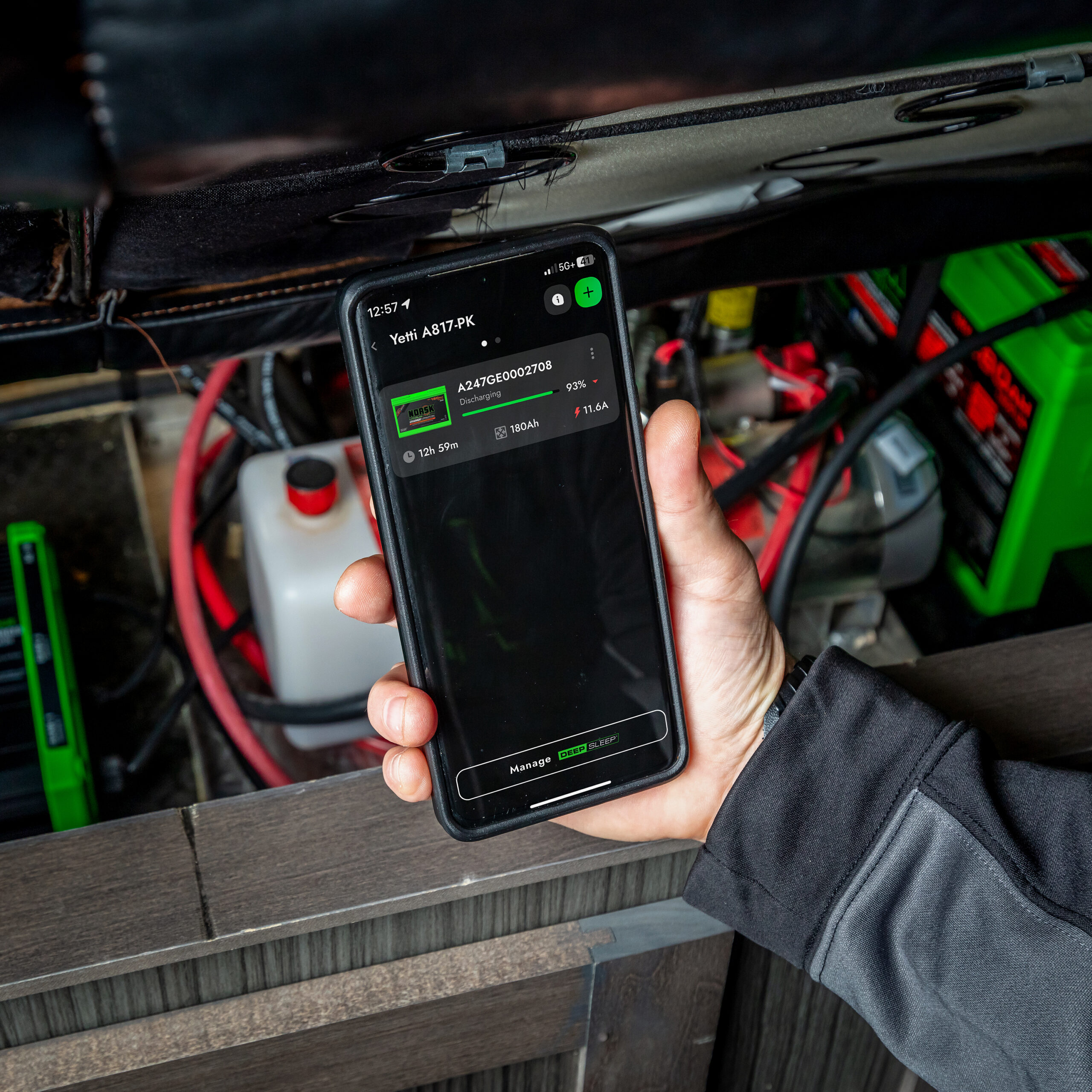 Connect to the battery via Bluetooth® and monitor and manage your battery with ease using the free Norsk Guardian® App. View real-time battery status, remaining runtime, voltage, amp draw, and system health. The app also provides access to features like Deep Sleep™ and Emergency Reserve (ESR), giving you complete control from your smartphone.