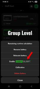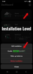 You can enable Deep Sleep using the Guardian App at the installation level, the group level or a specific battery. Click on either the ‘Manage Deep Sleep’ button at the bottom of the screen or by using the three vertical dots in the upper right hand corner. Then click the ‘Enable Deep Sleep’ button.You will then see a confirmation message that Deep Sleep has been engaged.