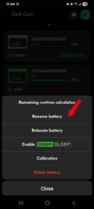 To rename a battery in the Norsk Lithium Guardian app, simply click the three vertical dots next to the battery you would like to rename, then click ‘Rename battery’